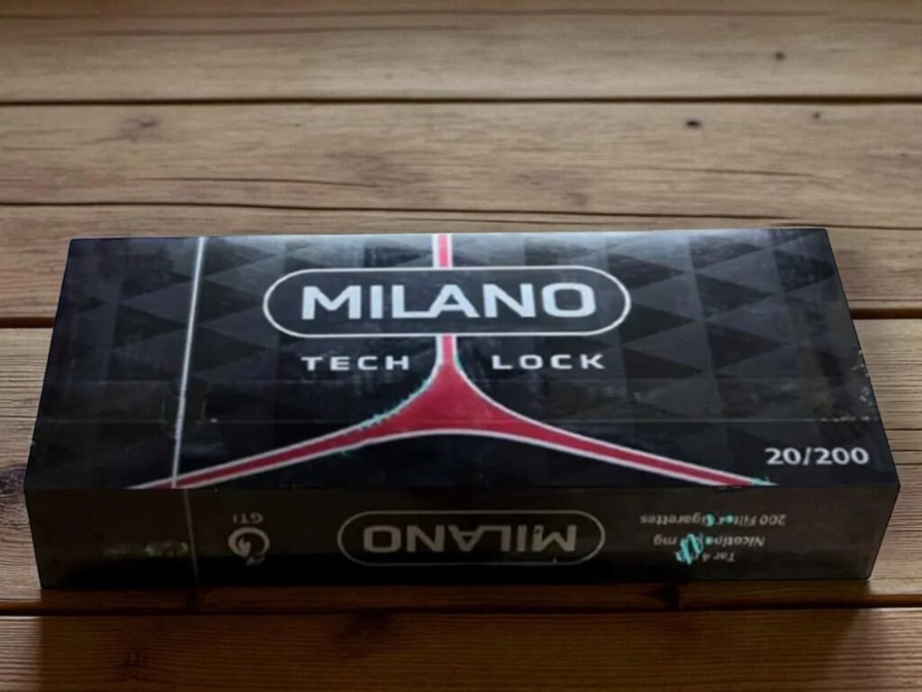 Milano Black Tech Lock บุหรี่สายหวานทาร์ 2 มก. นิโคติน 0.1 มก. ขนาดมวนสลิม เหมาะสำหรับคนชอบรสชาติหวานนุ่มนวล ผลิตจาก UAE ภายใต้มาตรฐานคุณภาพสูง บรรจุ 1 คอตตอน 10 ซอง ซองละ 20 มวน